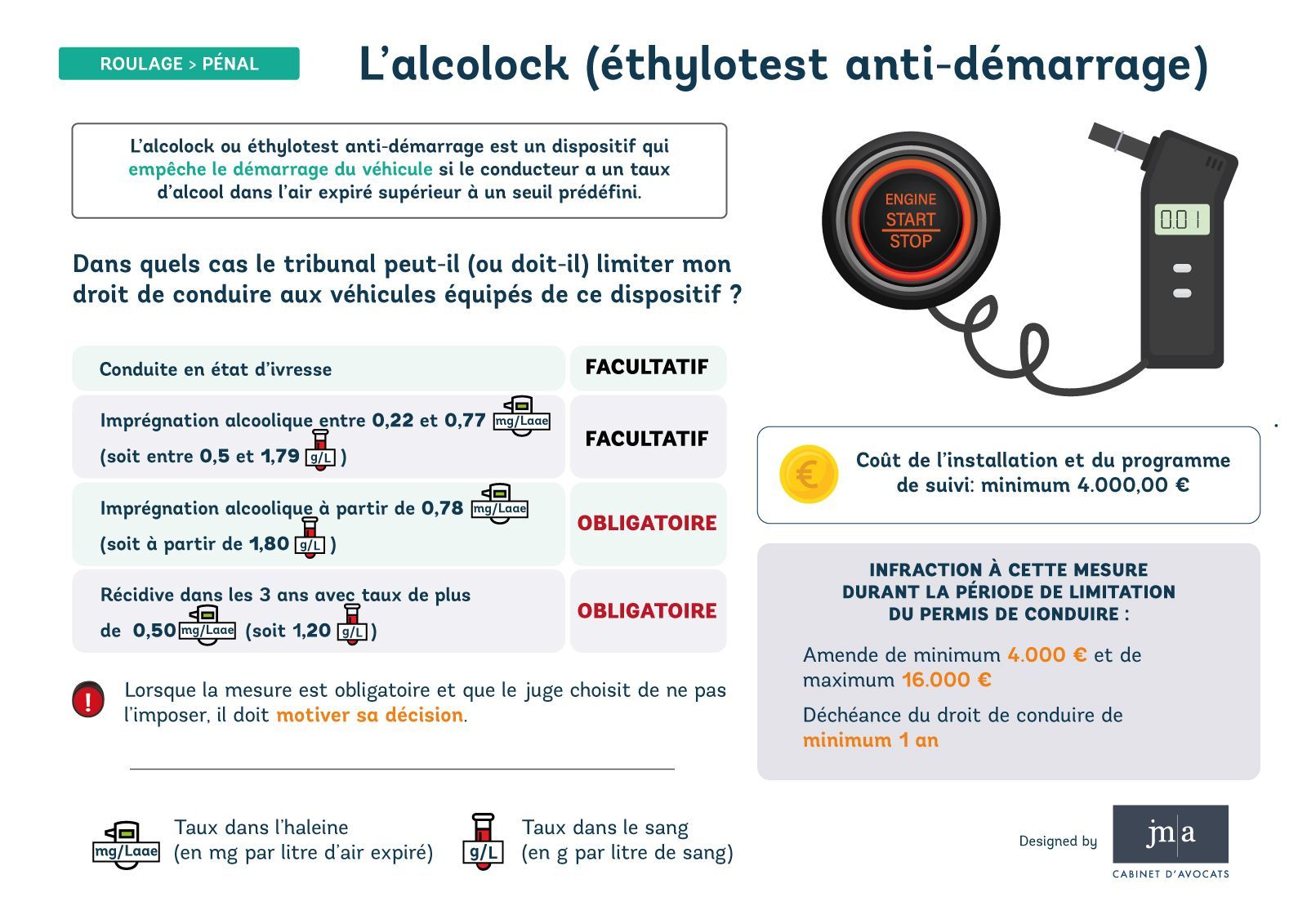 Si le taux dépasse les valeurs ci-dessous, vous serez cité devant le Tribunal de police compétent :